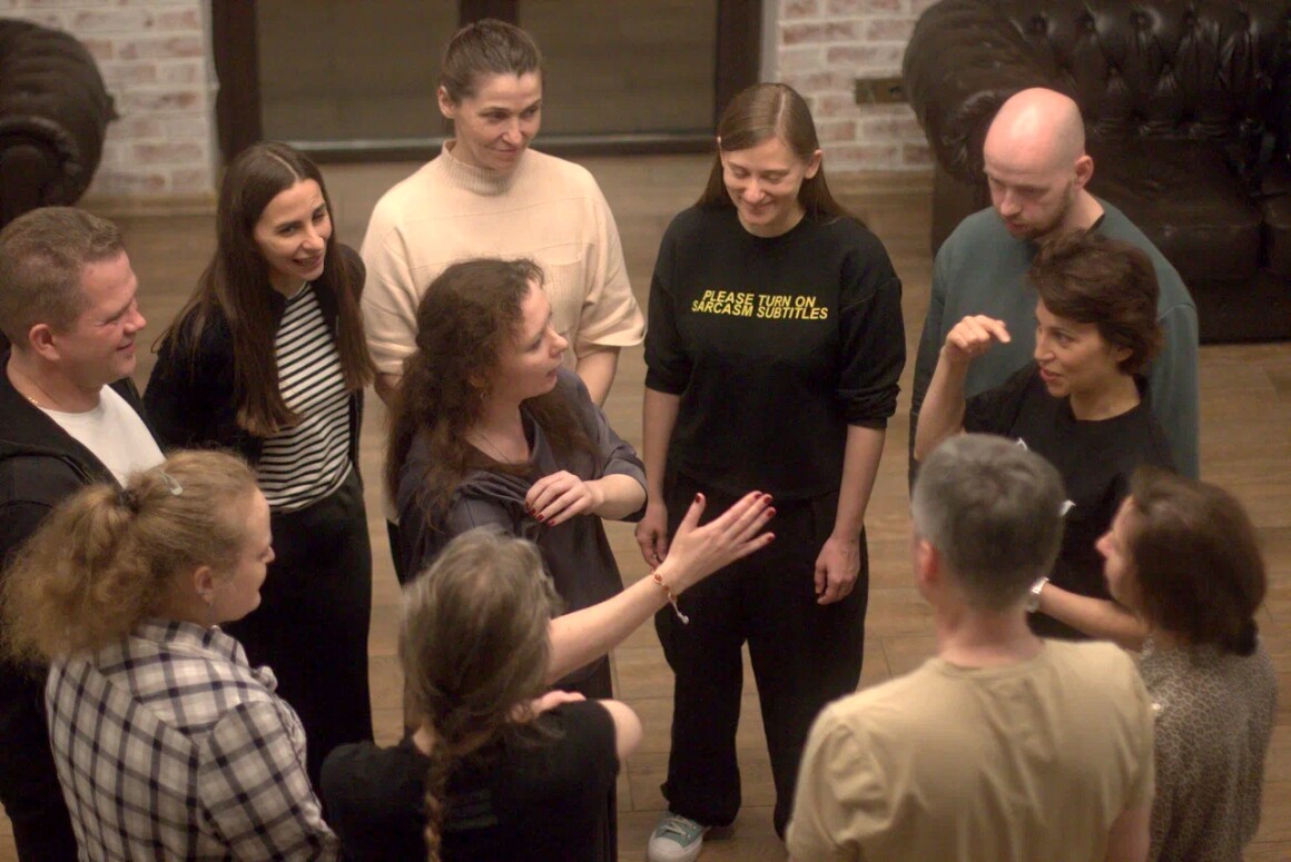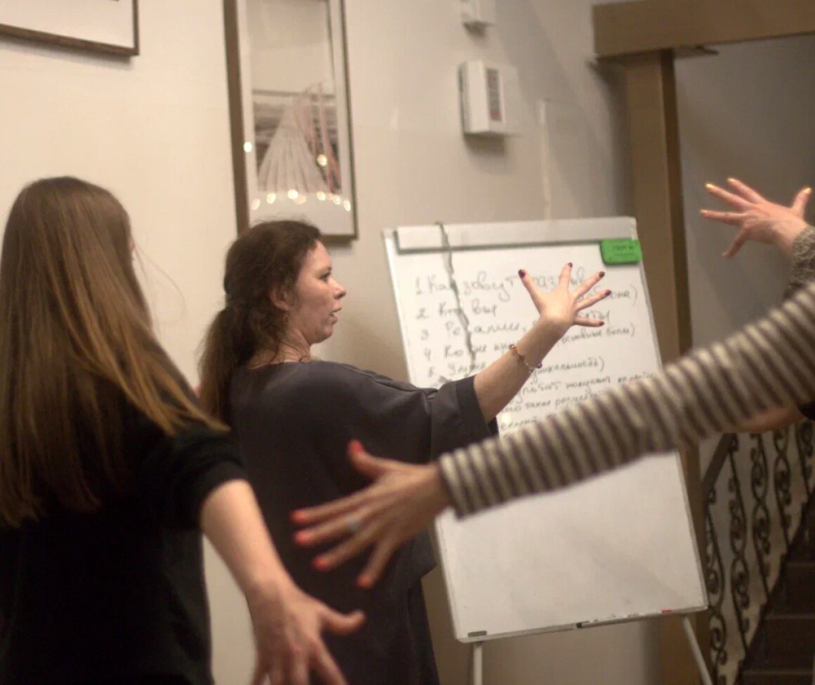 - Практика с первого дня – упражнения на речь, голос, жесты и импровизацию.